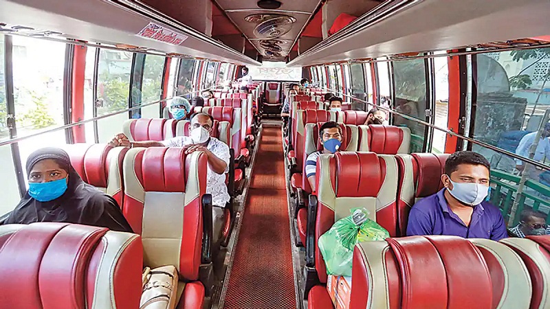 গত সোমবার মন্ত্রিপরিষদ বিভাগ থেকে জারি করা প্রজ্ঞাপনে করোনা সংক্রমণ নিয়ন্ত্রণে আনতে ১৩ জানুয়ারি থেকে মোট আসনের অর্ধেক যাত্রী নিয়ে বাস চলাচলের নির্দেশনা দেওয়া হয়।