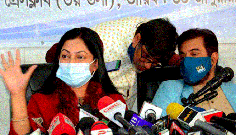 সংবাদ সম্মেলনে ইলিয়াস কাঞ্চন, নিপুণ, রিয়াজসহ কাঞ্চন-নিপুণ পরিষদের সদস্যরা উপস্থিত ছিলেন।