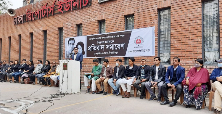 সাংবাদিক দম্পতি সাগর-রুনি হত্যার বিচার দাবিতে ঢাকা রিপোর্টার্স ইউনিটি (ডিআরইউ) আয়োজিত প্রতিবাদ সমাবেশ শুরু হয়েছে। শুক্রবার (১১ ফেব্রুয়ারি) সকাল ১১টায় ডিআরইউ প্রাঙ্গণে এ প্রতিবাদ সমাবেশ শুরু হয়।