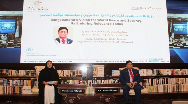 শুক্রবার (১১ ফেব্রুয়ারি) আবুধাবিতে আয়োজিত এক আলোচনা অনুষ্ঠানে এ কথা বলেন তিনি। ড. মোমেন এমিরেটস সেন্টার ফর স্ট্র্যাটেজিক অ্যান্ড সিকিউরিটি স্টাডিজে আয়োজিত এই অনুষ্ঠানে বৈশ্বিক শান্তি ও বিশ্ব নিরাপত্তার বিষয়ে বঙ্গবন্ধু শেখ মুজিবুর রহমানের দর্শন তুলে ধরেন।