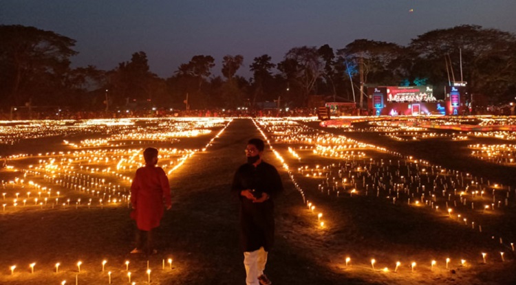 সন্ধ্যা ৬টা ৩ মিনিটে সূর্যাস্তের সঙ্গে সঙ্গে জেলা প্রশাসক মো. হাবিবুর রহমান মোমবাতি জ্বালিয়ে লাখো মঙ্গল প্রদীপ ও মোমবাতি প্রজ্জ্বলন উদ্বোধন করেন।
