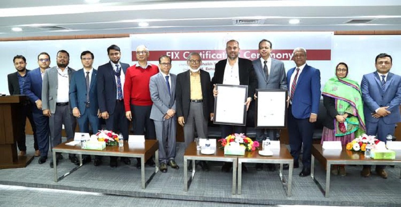 বুধবার (২৩ ফেব্রুয়ারি) প্রতিষ্ঠান দুটিকে ডিএসইর ফিক্স সার্টিফিকেশন প্রদান করা হয়েছে। ডিএসইর চেয়ারম্যান মো. ইউনুসুর রহমানের সভাপতিত্বে ডিএসইর নিকুঞ্জ ভবনে টেনিং একাডেমিতে বিএসইসির কমিশনার অধ্যাপক ড. শেখ শামসুদ্দিন আহমেদ প্রধান অতিথি হিসেবে উপস্থিত থেকে দুটি প্রতিষ্ঠানকে ফিক্স সার্টিফিকেশন প্রদান করেন৷