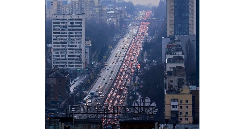 ইউক্রেনের রাজধানী কিয়েভে জরুরি সাইরেন বাজানো হয় এবং বিভিন্ন গণমাধ্যমে প্রকাশিত ছবিতে দেখা যায় যে মহাসড়কগুলোতে শহর ছেড়ে যেতে চাওয়া মানুষের গাড়ির ভিড়।