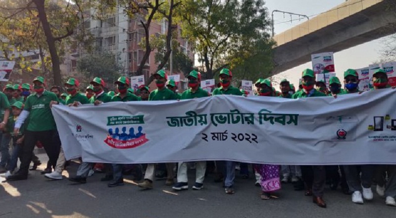 ভোটার দিবস উপলক্ষে দিনটি উদযাপন করছে নির্বাচন কমিশন (ইসি)। রাজধানী ঢাকার মতো সারাদেশেই এ লক্ষ্যে আয়োজন করা হয়েছে নানা কর্মসূচির। নির্বাচন কমিশন আয়োজিত র্যালিটি সকাল সোয়া ৮টায় মানিক মিয়া অ্যাভিনিউ থেকে শুরু হয়ে ৯টার দিকে বঙ্গবন্ধু আন্তর্জাতিক সম্মেলন কেন্দ্রে গিয়ে শেষ হয়। এতে নির্বাচন কমিশনার বেগম রাশিদা সুলতানা, আহসান হাবীব খান, মো. আলমগীর ও আনিছুর রহমান এবং ইসি সচিব মো. হুমায়ুন কবীর খোন্দকারসহ সংস্থাটির সব পর্যায়ের কর্মকর্তা-কর্মচারীরা অংশ নেন। র্যালির শুরুতে পায়রা অবমুক্ত করেন সিইসি ও কমিশনাররা।