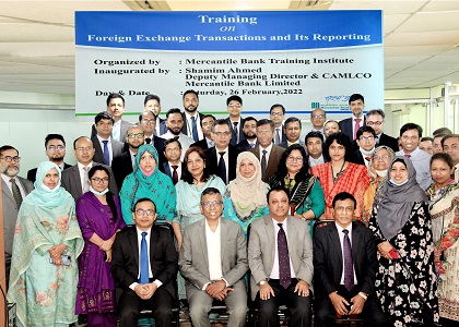 মার্কেন্টাইল ব্যাংক ট্রেনিং ইনস্টিটিউটে সম্প্রতি ‘ফরেন এক্সচেঞ্জ লেনদেন ও রিপোর্টিং’ শীর্ষক প্রশিক্ষণ অনুষ্ঠিত হয়েছে। মার্কেন্টাইল ব্যাংকের প্রধান কার্যালয়ের ইন্টারন্যাশনাল ডিভিশন, সিটিপিসিসহ ঢাকা অঞ্চলের বিভিন্ন এডি শাখার ফরেন এক্সচেঞ্জ ডেস্কের ৪০জন কর্মকর্তা উক্ত প্রশিক্ষণে অংশ নেন।