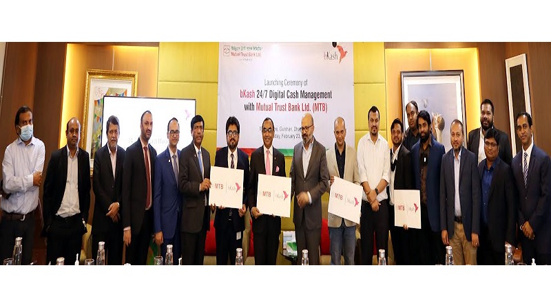 ব্যাংকের ডিজিটাইজড সুবিধাগুলোকে আরো উন্নত করার লক্ষ্যে, মিউচুয়াল ট্রাস্ট ব্যাংক লিমিটেড (এমটিবি) এবং দেশের শীর্ষস্থানীয় মোবাইল ফাইন্যান্সিয়াল সার্ভিস প্রোভাইডার, বিকাশ সম্প্রতি গ্রাহকদের জন্য ২৪/৭ ডিজিটাল ক্যাশ ম্যানেজমেন্ট সেবা চালু করেছে। এই সম্পূর্ণ স্বয়ংক্রিয় পরিষেবা ডিস্ট্রিবিউটরদের জীবনকে আরো সহজ করে তুলবে। এর ফলে বিকাশের ডিস্ট্রিবিউটররা এমটিবি অ্যাকাউন্টের ব্যালেন্স ব্যবহার করে ই-মানি তৈরি করতে পারবেন এবং যেকোনো সময় যেকোনো স্থান থেকে এই সেবাটি ব্যবহার করতে সক্ষম হবেন।