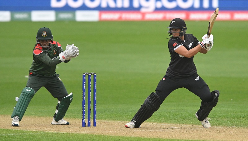 জাহানারা আলমের বলে সাবলীল ব্যাটিং করলেও ফারিহা তৃষ্ণার বলে বেগ পেতে হচ্ছিলো সুজি বেটস এবং সোফি ডিভাইনকে। তবে বাংলাদেশকে প্রথম উইকেট এনে দেন সালামা খাতুন। ডানহাতি এই স্পিনারের লেংথ বল লেগ সাইডে টেনে খেলতে গিয়ে বোল্ড হয়েছেন ডিভাইন। ১৪ বলে ১৬ রানের ইনিংস খেলে সাজঘরে ফেরেন কিউই অধিনায়ক। এরপর নিউজিল্যান্ডকে আর কোনো উইকেট হারাতে দেননি বেটস এবং অ্যামিলিয়া কের। তাদের দুজনের ১১২ রানের অবিচ্ছিন্ন জুটিতে ৯ উইকেটের বড় জয় পায় কিউইরা।