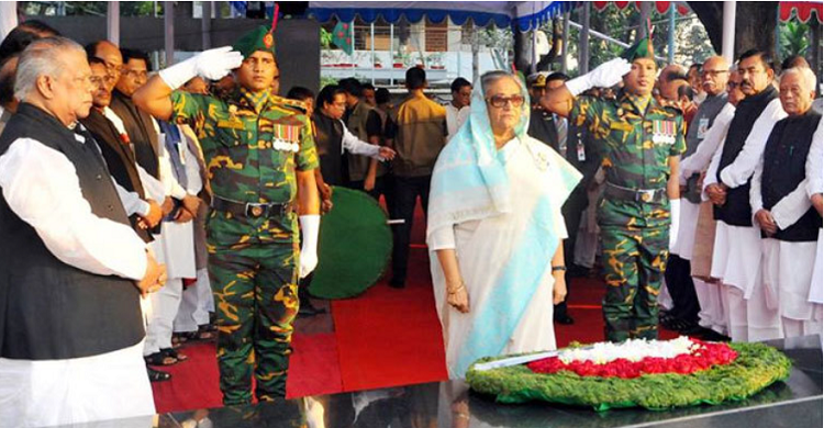 এদিন প্রথমে প্রধানমন্ত্রী হিসেবে এবং পরে আওয়ামী লীগ সভাপতি হিসেবে দলের শীর্ষ নেতাদের নিয়ে জাতির পিতার প্রতিকৃতিতে শ্রদ্ধা জানান শেখ হাসিনা।