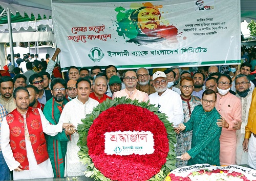 জাতির পিতা বঙ্গবন্ধু শেখ মুজিবুর রহমানের জন্মবার্ষিকী ও জাতীয় শিশু দিবস উপলক্ষ্যে ইসলামী ব্যাংক বাংলাদেশ লিমিটেডের পক্ষ থেকে বৃহস্পতিবার (১৭ মার্চ) ধানমন্ডি ৩২ নম্বরে বঙ্গবন্ধুর প্রতিকৃতিতে শ্রদ্ধা নিবেদন করে।