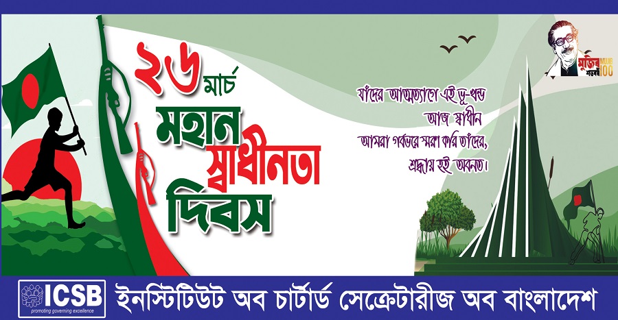 ইনস্টিটিউট অব চার্টার্ড সেক্রেটারীজ অব বাংলাদেশ (আইসিএসবি) যথাযোগ্য মর্যাদা ও শ্রদ্ধার সঙ্গে বাংলাদেশের ৫২তম স্বাধীনতা দিবস পালন করেছে। ঢাকা রিজিওনাল চ্যাপ্টার (ডিআরসি) সাব কমিটি অনুষ্ঠানটি আয়োজন করে। সকালে জাতীয় পতাকা উত্তোলনের মধ্য দিয়ে দিনটি শুরু হয়।