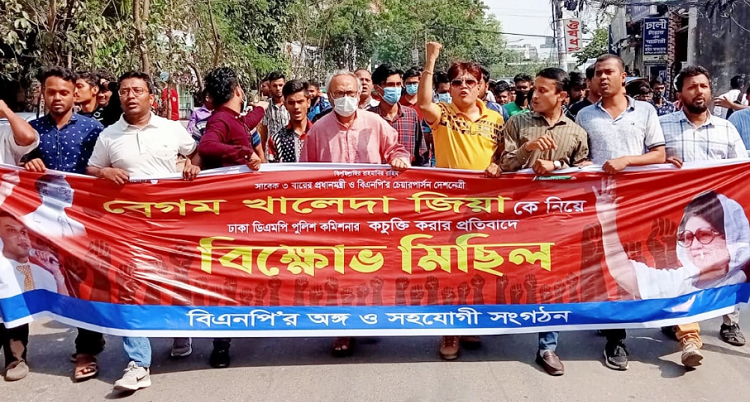 বিএনপি চেয়ারপারসন খালেদা জিয়াকে নিয়ে ডিএমপি কমিশনারের ‘কটূক্তির’ প্রতিবাদে বিক্ষোভ মিছিল করেছে দলটি। বৃহস্পতিবার (৩১ মার্চ) দুপুরে দলের সিনিয়র যুগ্ম মহাসচিব রুহুল কবির রিজভীর নেতৃত্বে রাজধানীর ধানমন্ডির শংকর এলাকায় এ মিছিল অনুষ্ঠিত হয়।
