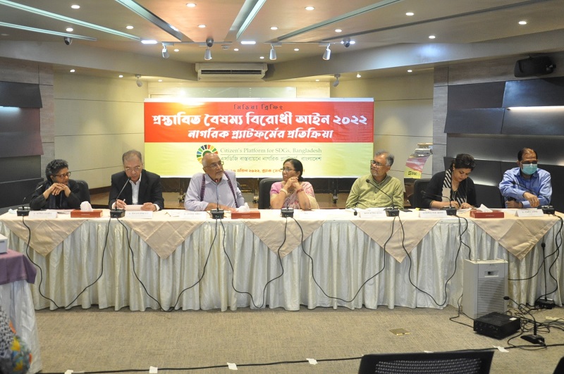 নাগরিক প্ল্যাটফর্মেও কোর গ্রুপের সদস্য এবং মানুষের জন্য ফাউন্ডেশনের নির্বাহী পরিচালক শাহীন আনাম সভা প্রধান হিসেবে উপস্থিত ছিলেন। তিনি জনবান্ধব, বিশেষত এমন নারীবান্ধব আইন উত্থাপনের জন্য সরকারকে অভিনন্দন জানিয়ে বলেন, এই আইন উত্থাপন কোন বিচ্ছিন্ন ঘটনা নয়। এর পেছনের দীর্ঘদিনের সংগ্রামের কথা তিনি তুলে ধরেন। তিনি বলেন, ২০০৭ সালে প্রথম এর কাজ শুরু হয় এবং লক্ষ্য করা হয়, বৈষম্যকে সুনিদির্ষ্টভাবে লক্ষ্য করে কোন আইন নেই। পরবর্তীতে জনমত জরিপের মাধ্যমে ২০১৩ সালে আইন কমিশনে খসড়া জমা দেওয়া হয়। এখন এই আইনটি জনগণের প্রত্যাশাকে প্রতিফলিত করে কিনা সেটা পর্যবেক্ষণ করাই আমাদের মূল লক্ষ্য। তবে সেজন্যে সঠিক মনিটরিং কমিটি প্রয়োজন বলে তিনি মনে করেন।