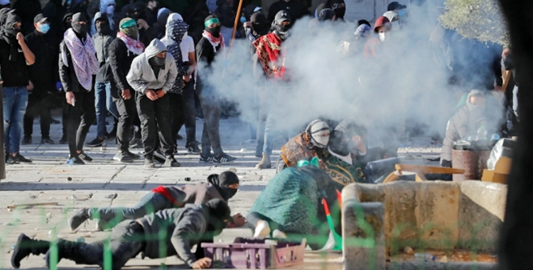 অনলাইনে প্রকাশিত ভিডিওতে দেখা গেছে, ফিলিস্তিনিরা পুলিশকে লক্ষ্য করে পাথর ছুড়ছে। অন্যদিকে ইসরায়েলি পুলিশ ফিলিস্তিনিদের লক্ষ্য করে কাঁদানে গ্যাস ও গ্রেনেড নিক্ষেপ করছে। এসময় প্রার্থনাকারীরা মসজিদের ভেতরে নিজেদের রক্ষায় ব্যারিকেড দিয়ে রাখে।