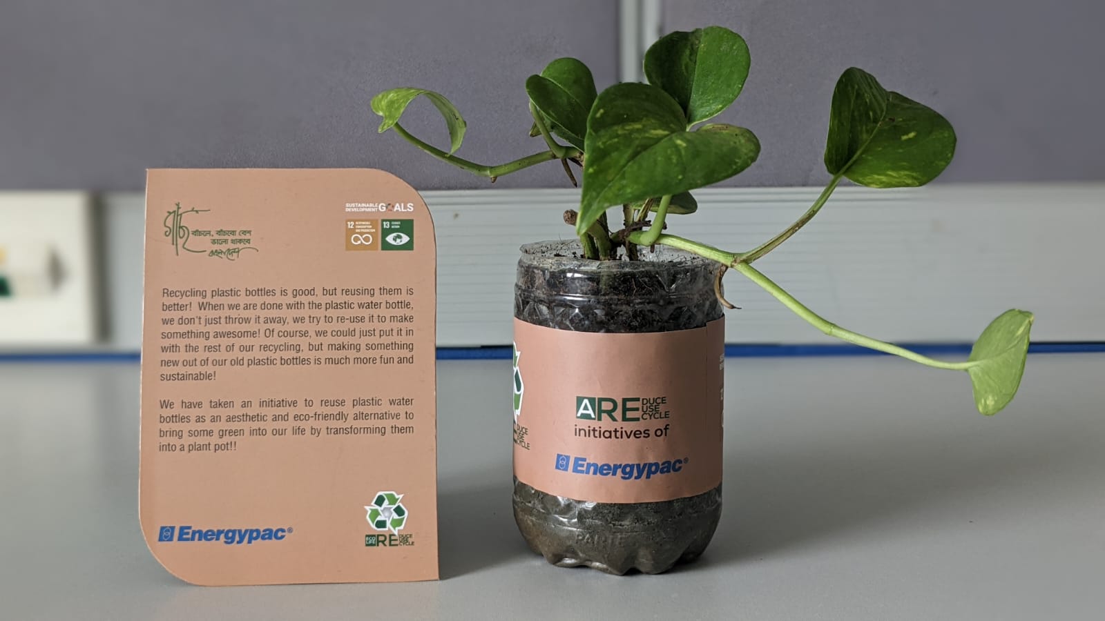 সময়ের সাথে সাথে প্লাস্টিক বোতলের ব্যবহার ক্রমশ বৃদ্ধি পাচ্ছে, ফলে একই হারে পরিবেশে বৃদ্ধি পাচ্ছে প্লাস্টিক বর্জ্যের পরিমাণও। তবে, ব্যবহারের পর বোতলগুলো ফেলে দেওয়ার পরিবর্তে সেগুলোকে পুনরায় নানাভাবে ব্যবহার করা যেতে পারে। রিসাইক্লিংয়ের পাশাপাশি প্লাস্টিকের বোতলকে পুনর্ব্যবহারযোগ্য করে তোলার মাধ্যমে যে কেউ তাদের সৃজনশীলতার প্রকাশ করতে পারেন। টেকসই পরিবেশগত ভারসাম্য ও সবুজের সৌন্দর্য্য রক্ষার্থে সৃজনশীল এক উদ্যোগের আওতায় এখন এনার্জিপ্যাক তাদের ব্যবহৃত প্রতিটি প্লাস্টিক বোতলকে গাছ লাগানোর পাত্রে পরিণত করতে যাচ্ছে।