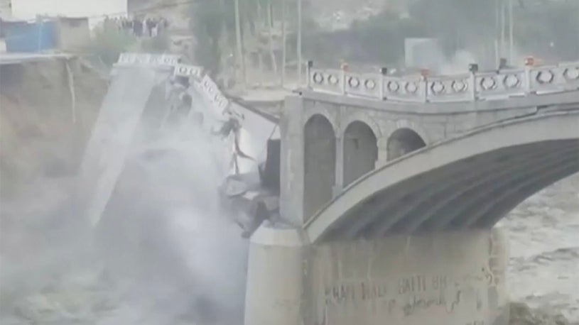 পাকিস্তানের হাসানাবাদের হ্রদের বরফ গলে যাবার কারণে সৃষ্ট তীব্র স্রোতে ধসে পড়ল একটি সংযোগ সেতু।