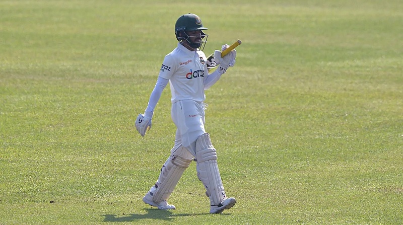 এদিকে বাজে সময় যেন কাটছেই না মুমিনুল হকের। বাংলাদেশের অধিনায়ক এ দিন ফিরেছেন মাত্র ১৯ বল খেলে। ব্যক্তিগত দুই রানে কনকাশন সাব কাসুন রাজিথার বলে বোল্ড হয়ে ফিরেছেন তিনি। রাজিথার বলটি রক্ষণাত্মক ভঙ্গিমায় খেলতে চেয়েছিলেন বাঁহাতি এই ব্যাটার। যদিও তার ব্যাট-প্যাডের মাঝ দিয়ে স্টাম্পে লাগে সেই ডেলিভারিটি।