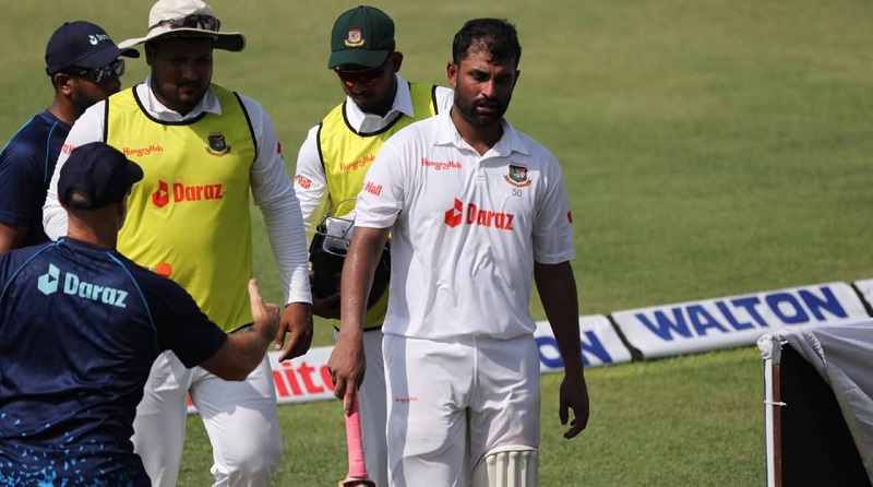 ঘটনাটি চা বিরতির সময়ের। ৩৫ রান নিয়ে তৃতীয় দিনের ব্যাটিং শুরু করা তামিম রিটায়ার্ড হার্ট হয়েছেন ১৩৩ রানে। চা বিরতিতে যাওয়ার পর আর ব্যাটিংয়ে নামেননি। মূলত ক্র্যাম্পের কারণে ব্যাটিংয়ে আসননি বাঁহাতি এই ওপেনার। তামিমের জায়গায় ব্যাটিংয়ে এসেছিলেন লিটন দাস। প্রথম সেশনের শেষ দিকে এসে অস্বস্তিতে ভুগছিলেন তামিম। রানিং বিটুইন দ্য উইকেটের ক্ষেত্রে বেশ খানিকটা মন্থর হয়ে পড়েছিলেন। এরপর তীব্র গরমে পেরে উঠতে না পেরে বাধ্য হয়েই মাঠ ছাড়েন তামিম।