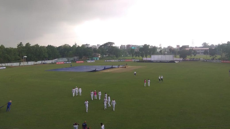গতরাতে চট্টগ্রামে বৃষ্টি হয়েছে। এর ফলে জহুর আহমেদ চৌধুরী স্টেডিয়ামের আউট ফিল্ড প্রস্তুত করতে বেগ পেতে হচ্ছে মাঠ কর্মীদের। একই কারণে নির্ধারিত সময়ের মধ্যে মাঠে গড়ায়নি চতুর্থ দিনের খেলা। সর্বশেষ পাওয়া তথ্য মতে, স্থানীয় সময় ১০ টা ৩০ মিনিটে শুরু হবে চতুর্থ দিনের খেলা।