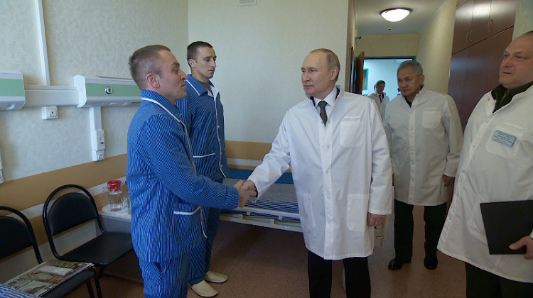 আহত সৈনিকদের দেখতে হাসপাতালে গেলেন রুশ প্রেসিডেন্ট ভ্লাদিমির পুতিন। সাদা এপ্রোনে চিকিতসাধীন সৈনিকদের দেখতে মস্কোর একটি হাসপাতালে গিয়েছেন তিনি। তিনি সৈনিকদের আশ্বস্ত করেছেন, “সবকিছু ঠিক হয়ে যাবে”। যুক্তরাজ্যভিত্তিক সংবাদ মাধ্যম ডেইলি মেইল এ তথ্য জানায়।