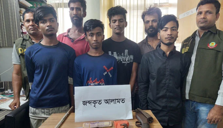 গ্রেপ্তারকৃত ছয়জন হলেন- সুজন হাওলাদার (৩২), রবিউল আউয়াল ওরফে রবি (১৯), বাবু ওরফে জুয়েল (২২), মো. রনি (১৯), একরাম আলী (৩৩) ও ইব্রাহিম মাঝি (২০)। তাদের কাছ থেকে একনলা বন্দুক, ডাকাতিতে ব্যবহৃত সিএনজিচালিত অটোরিকশা, চাপাতি, দুটি ছুরি, লোহার রড, পাইপ কাটার রেঞ্জ ও নগদ ২৫ হাজার টাকা উদ্ধার করা হয়েছে।