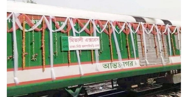 বাংলাদেশের ঢাকা ও ভারতের নিউ জলপাইগুড়ির মধ্যে ট্রেন চলাচল উদ্বোধন হয়েছে। বুধবার সকালে রেলমন্ত্রী নূরুল ইসলাম ও ভারতের রেলমন্ত্রী অশ্বিনী বৈষ্ণব মিতালী এক্সপ্রেস নামের ট্রেনটি উদ্বোধন করেন।