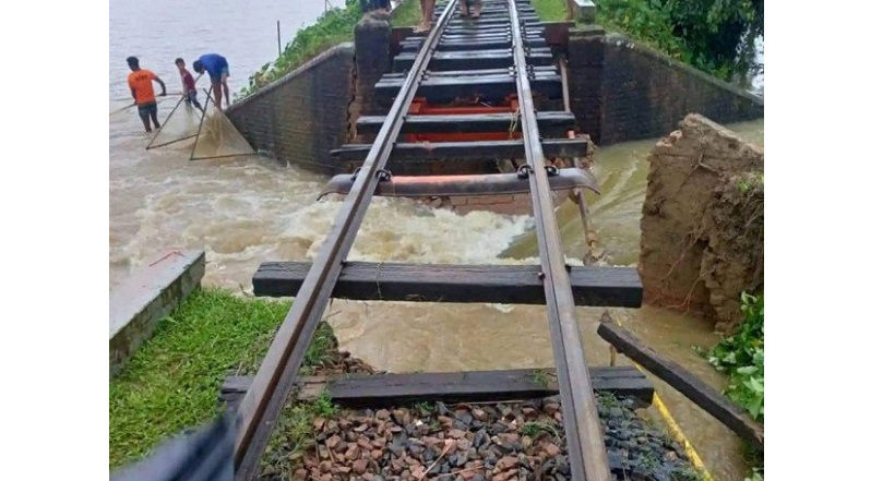 বন্যার পানিতে সেতু ভেঙে ঢাকার সঙ্গে রেল যোগাযোগ বন্ধ