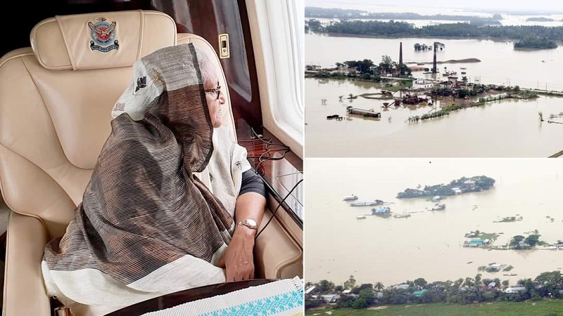 প্রধানমন্ত্রীর সফরসঙ্গীদের সূত্রে জানা গেছে, প্রধানমন্ত্রী হেলিকপ্টার থেকে এসব এলাকা দেখেছেন। এসব এলাকার মানুষ কতটা দুর্ভোগে আছেন, বিচ্ছিন্ন দ্বীপের মতো পানিবন্দি হয়ে আছে যেসব বাড়ি সেসব লক্ষ্য করেছেন।