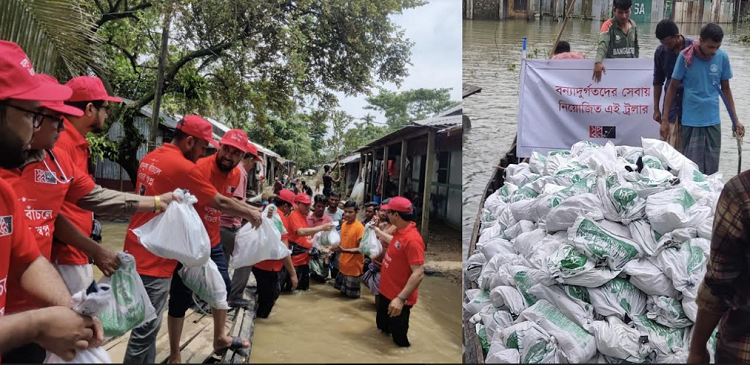এমন অসহায় বন্যাদুর্গতদের জন্য শুকনা খাবার, পানি এবং ওষুধ নিয়ে হাজির হয়েছে দেশের রিটেইল চেইন শপ ‘স্বপ্ন’।