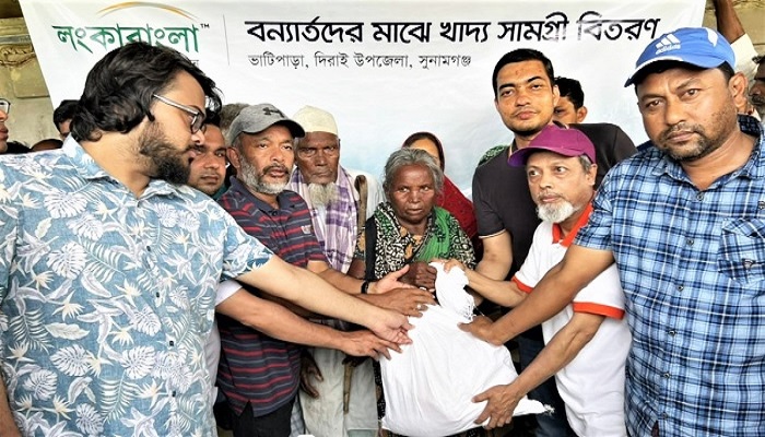 সিলেট ও সুনামগঞ্জে ভয়াবহ বন্যায় ক্ষতিগ্রস্তদের মধ্যে ত্রাণ বিতরণ করেছে লংকাবাংলা ফাউন্ডেশন। গত ২৩ জুন লংকাবাংলা ফাউন্ডেশন নিজেদের কর্পোরেট দায়বদ্ধতা (সিএসআর) কার্যক্রমের অংশ হিসেবে সুনামগঞ্জের দিরাই উপজেলার ভাটিপাড়ায় এ ত্রাণ সমাগ্রী বিতরণ করে।