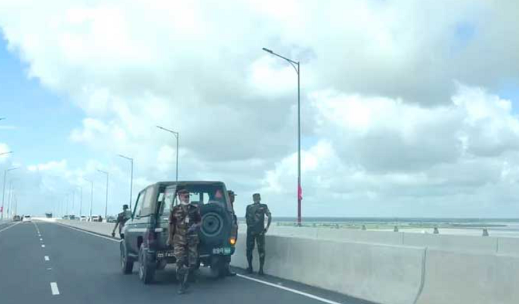 সোমবার সেতুর ওপর কোথাও কোথাও গাড়ি থামিয়ে মানুষজনকে দাঁড়িয়ে থাকতে দেখা গেলেও কিছুক্ষণের মধ্যেই তাদের সরিয়ে দিচ্ছেন সেনাবাহিনীর সদস্যরা।