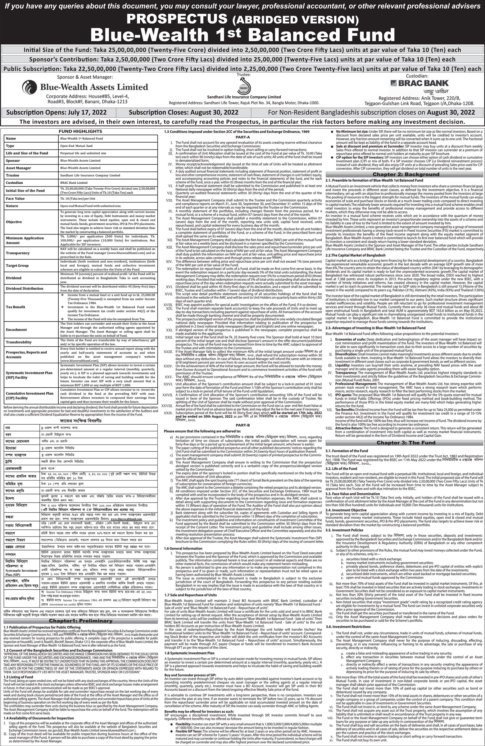 Prospectus (Abridged Version) of Blue-Wealth 1st Balanced Fund