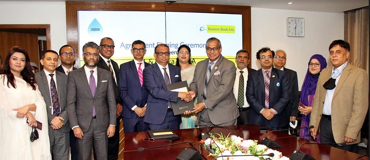 ঢাকা পানি সরবরাহ ও পয়ঃনিস্কাশন কর্তৃপক্ষের (ঢাকা ওয়াসা) সঙ্গে ওয়াশার বিল পরিশোধ সংক্রান্ত একটি চুক্তি স্বাক্ষর করেছে ইস্টার্ণ ব্যাংক লিমিটেড (ইবিএল)।