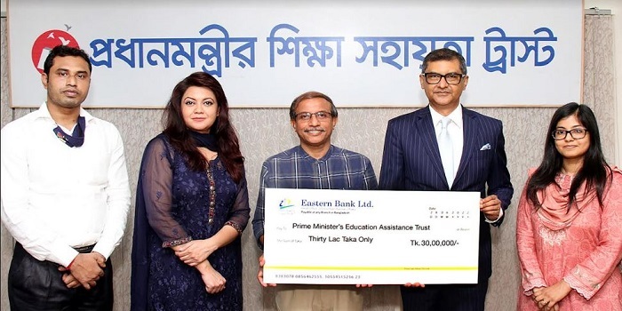 প্রধানমন্ত্রীর শিক্ষা সহায়তা ট্রাস্ট তহবিলে ৩০ লাখ টাকা অনুদান দিয়েছে ইস্টার্ণ ব্যাংক লিমিটেড (ইবিএল)। নিজস্ব সামাজিক দায়বদ্ধতার অংশ হিসেবে ইবিএল এ অর্থ প্রদান করে।
