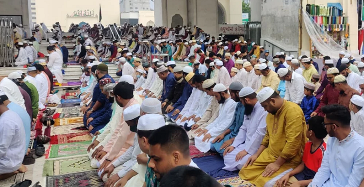 রোববার (১০ জুলাই) সকাল ৭টায় এ ঈদ জামাত শুরু হয়। জাতীয় মসজিদে ঈদ জামাতে অংশ নিতে সকাল থেকে রাজধানীর বিভিন্ন এলাকা থেকে মুসল্লিরা আসতে শুরু করেন। প্রথম জামাতে মুসল্লিদের ঢল নামে।