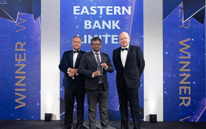 ইউরোমানি কর্তৃক বেষ্ট ব্যাংক ইন বাংলাদেশ ২০২২ নির্বাচিত হয়েছে ইস্টার্ন ব্যাংক লিমিটেড (ইবিএল)। বাংলাদেশের একমাত্র ব্যাংক হিসেবে ইবিএল রেকর্ড চারবার এই সম্মাননা অর্জন করে। লন্ডনে আয়োজিত ইউরোমানি অ্যাওয়ার্ডস ফর এক্সিলেন্স অনুষ্ঠানে সম্মাননা ট্রফিটি গ্রহণ করেন ইস্টার্ন ব্যাংকের পক্ষে লন্ডনস্থ বাংলাদেশ দূতাবাসের কমার্শিয়াল কাউন্সিলর এস.এম জাকারিয়া হক ।