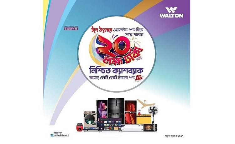 জানা গেছে, ডিজিটাল ক্যাম্পেইনের সিজন ১৫ এর আওতায় ঈদ উৎসবে ওয়ালটন ফ্রিজ, টিভি, এসি, ওয়াশিং মেশিন, মাইক্রোওয়েভ ওভেন, ব্লেন্ডার, গ্যাস স্টোভ, রাইস কুকার ও ফ্যান-সহ ক্রেতাদের জন্য ২০ লাখ টাকা পর্যন্ত নিশ্চিত ক্যাশব্যাক এবং কোটি টাকার ফ্রি পণ্যের বিভিন্ন সুবিধা দেয়া হয়েছে।