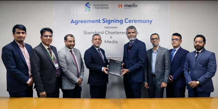ইউনাইটেড হসপিটাল লিমিটেডের সহ-প্রতিষ্ঠান মেডিক্স ধানমন্ডি সেন্টারের সঙ্গে একটি চুক্তি স্বাক্ষর করেছে স্ট্যান্ডার্ড চার্টার্ড বাংলাদেশ। সম্প্রতি ব্যাংকটির প্রিন্সিপাল কার্যালয়ে বিশেষ ছাড় দিতে এই চুক্তি স্বাক্ষরিত হয়।