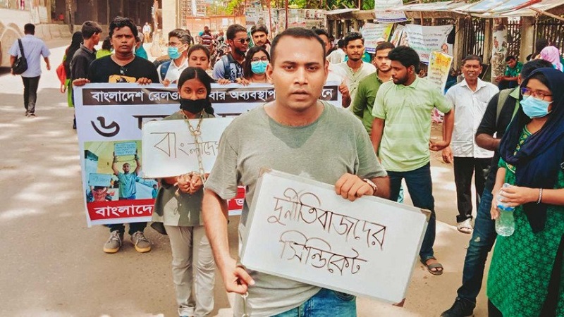এর আগে ৭ জুলাই থেকে বাংলাদেশ রেলওয়ের অব্যবস্থাপনা ও যাত্রী হয়রানির প্রতিবাদে ৬ দফা দাবিতে হাতে শিকল বাঁধা অবস্থায় কমলাপুর রেলস্টেশনে অবস্থান করছেন ঢাকা বিশ্ববিদ্যালয়ের থিয়েটার অ্যান্ড পারফরম্যান্স স্টাডিজ বিভাগের চতুর্থ বর্ষের শিক্ষার্থী মহিউদ্দিন রনি। শুরুতে একা আন্দোলন করলেও পরে তার বন্ধু, সহপাঠীসহ বেশ কয়েকজন শিক্ষার্থী অবস্থান নেন। কয়েকদিন ধরে সেখানে তারা গান, কবিতা, পথনাটকের মাধ্যমে প্রতিবাদ জানাতে শুরু করেন।