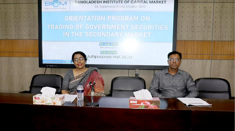 ঢাকা স্টক এক্সচেঞ্জ (ডিএসই) ও চট্টগ্রাম স্টক এক্সচেঞ্জ (সিএসই)-এ শীঘ্রই শুরু হতে যাচ্ছে ট্রেজারি সিকিউরিটিজের লেনদেন। এ বিষয়ে প্রাথমিক জ্ঞান প্রদান এবং সেকেন্ডারি মার্কেটের লেনদেন সম্পর্কে সম্যক ধারণা দিতে বুধবার (২০ জুলাই) সন্ধ্যায় এক ওরিয়েন্টেশন প্রোগ্রামের আয়োজন করে বাংলাদেশ ইন্সটিটিউট অব ক্যাপিটাল মার্কেট (বিআইসিএম)।
