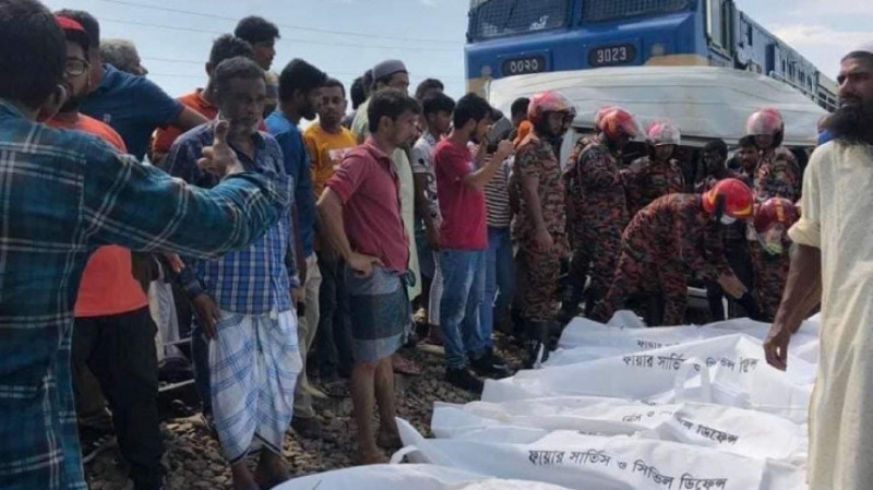 এর আগে, মীরসরাইয়ে দুর্ঘটনায় নিহত ১১ জনের লাশ ঘটনাস্থল থেকে উদ্ধার করে চট্টগ্রাম রেলওয়ে থানায় আনা হয়। নিহত ১১ জন হাটহাজারী উপজেলার আমানবাজার এলাকার ‘আর অ্যান্ড জে’ নামে একটি কোচিং সেন্টারের ছাত্র ও শিক্ষক।