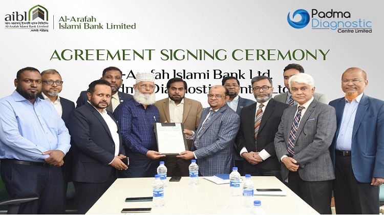 আল-আরাফাহ ইসলামী ব্যাংক লিমিটেডের সঙ্গে কর্পোরেট চুক্তি স্বাক্ষর করেছে পদ্মা ডায়াগনোস্টিক সেন্টার লিমিটেড। রোববার (৩১ জুলাই) ব্যাংকের প্রধান কার্যালয়ে এ চুক্তি স্বাক্ষর অনুষ্ঠিত হয়।