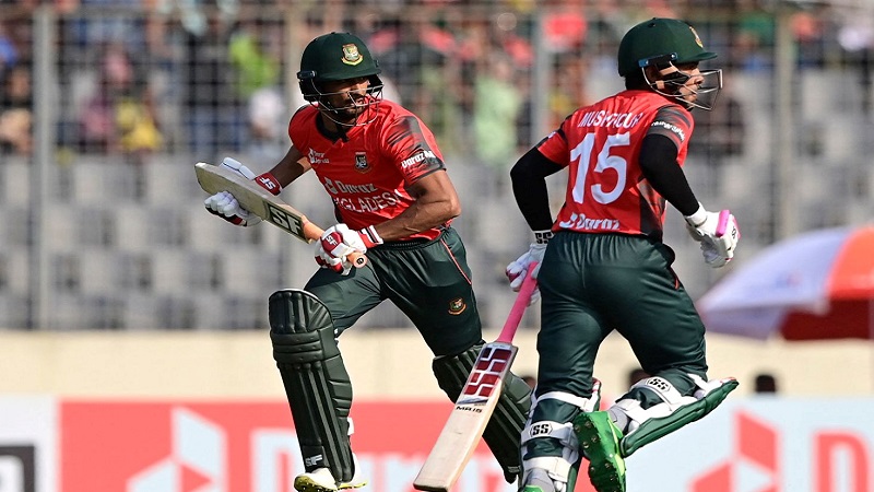 দুই ওপেনারকে হারিয়ে আস্তে আস্তে রান বাড়াচ্ছিলেন শান্ত এবং মুশফিকুর রহিম। যদিও বেশীক্ষণ রানের চাকা সচল রাখতে পারেনি এই জুটি। দলীয় ১২৭ রানে ফিরে যান আগের ম্যাচের আরেক হাফ সেঞ্চুরিয়ান মুশফিকুর রহিম। মিড উইকেটে ক্যাচ তুলে দিয়ে বিদায় নিয়েছেন এই মিডল অর্ডার ব্যাটার। ফেরার আগে ৩১ বলে একটি চারের সাহায্যে ২৫ রান করেন তিনি। নিজের দ্বিতীয় ওভারে মুশফিকের উইকেটটি নেন ওয়েসলি মাধভেরে।