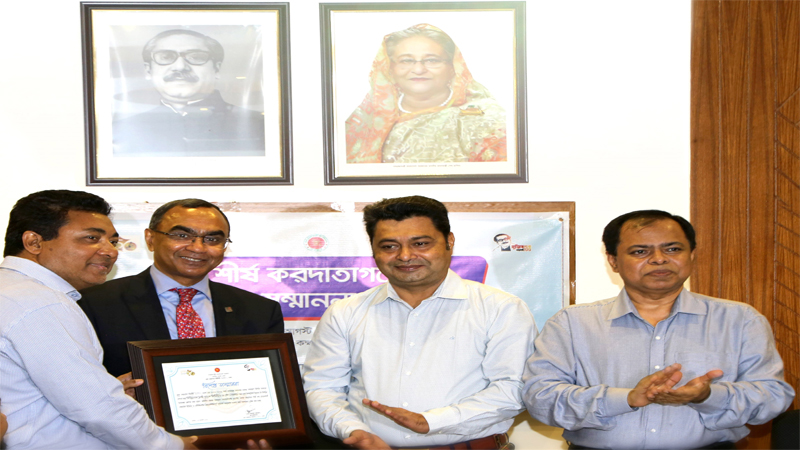এমটিবি’র ব্যবস্থাপনা পরিচালক ও প্রধান নির্বাহী, সৈয়দ মাহবুবুর রহমান এনবিআর কর অঞ্চল-১ কনফারেন্স হলে অনুষ্ঠিত এক পুরস্কার বিতরনী অনুষ্ঠানে মোঃ ইকবাল হোসেন, কর কমিশনার, বৃহৎ করদাতা ইউনিট (এলটিইউ)-এর কাছ থেকে স্বীকৃতি পত্র গ্রহণ করেন।