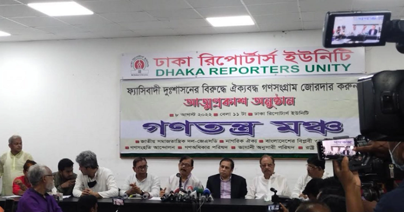 সংবাদ সম্মেলনে ‘গণতন্ত্র মঞ্চ’র রূপরেখা তুলে ধরে ১১ তারিখের কর্মসূচি ঘোষণা করেন নাগরিক ঐক্যের সভাপতি মাহমুদুর রহমান মান্না।