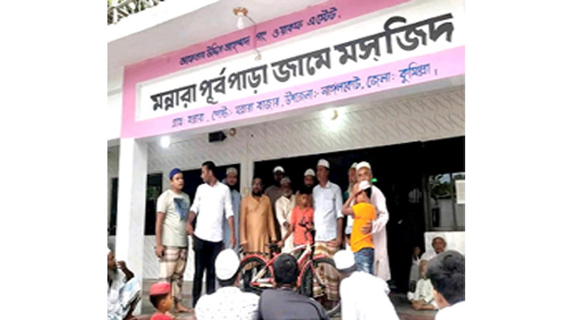 শিশু কিশোরদের মসজিদমুখী করতে এমন অভিনব কর্মসূচির আয়োজন করেছে কুমিল্লা জেলার নাঙ্গলকোট থানা মন্নারা পূর্বপাড়া জামে মসজিদ কমিটি। মসজিদ কমিটির পক্ষ হতে নিয়মিত নামাজ আদায়কারী ২৪ কিশোরের মধ্যে ০৫ জনকে পুরস্কার হিসেবে বাইসাইকেল প্রদান করা হয়।