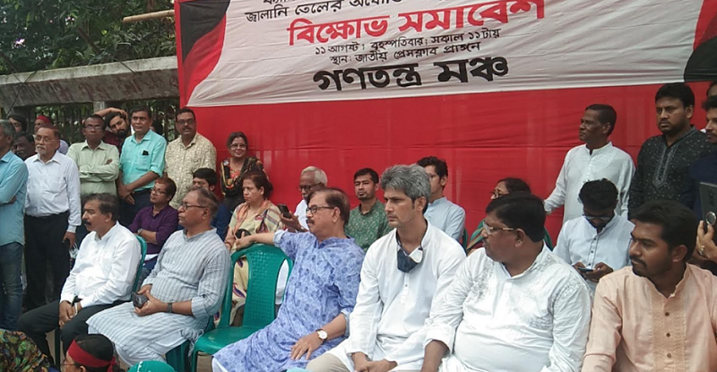 বৃহস্পতিবার (১১ আগস্ট) দুপুর ১২টায় জাতীয় প্রেস ক্লাবের সামনে গণতন্ত্র মঞ্চ আয়োজিত ফ্যাসিবাদ হটাও, শাসনব্যবস্থা বদলাও এবং জ্বালানি মূল্য বৃদ্ধি রুখে দাঁড়াও শীর্ষক বিক্ষোভ সমাবেশে তিনি এসব কথা বলেন।