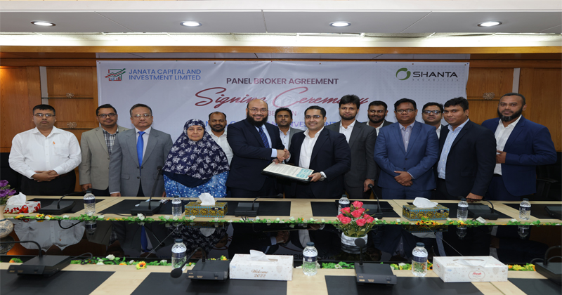শান্তা সিকিউরিটিজ লিমিটেড (এসএসএল) ও জনতা ব্যাংকের সহযোগী প্রতিষ্ঠান, জনতা ক্যাপিটাল অ্যান্ড ইনভেস্টমেন্ট লিমিটেড (জেসিআইএল) এর মধ্যে প্যানেল ব্রোকার সেবা প্রদানের জন্য একটি সমঝোতা স্মারক স্বাক্ষর করেছে।