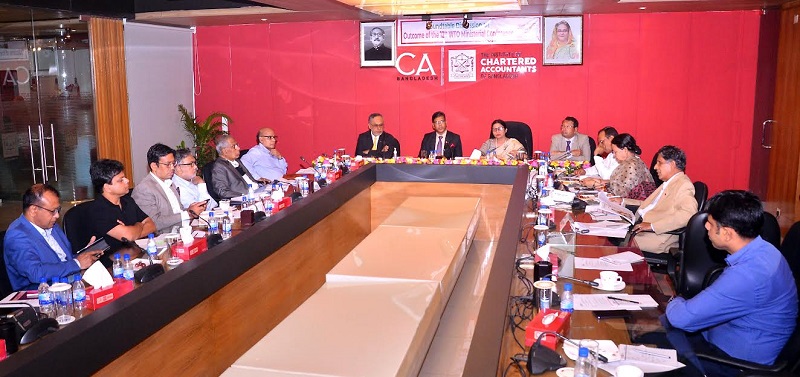 দি ইনস্টিটিউট অব চার্টার্ড অ্যাকাউন্ট্যান্টস অব বাংলাদেশ (আইসিএবি) শনিবার ডব্লিউটিও ১২তমম ন্ত্রী পর্যায়ের সম্মেলনের ফলাফল শীর্ষক গোলটেবিল আলোচনার আয়োজন করে । এতে প্রধান অতিথি হিসাবে উপস্থিত ছিলেন শরিফা খান, সচিব, অর্থনৈতিক সম্পর্ক বিভাগ, অর্থ মন্ত্রনালয়।এবং স্বাগত বক্তব্য রাখেন আইসিএবি প্রেসিডেন্ট মো: শাহাদাৎ হোসেন। সাবেক প্রেসিডেন্ট ও কাউন্সিল মেম্বার মো: হুমায়ুন কবীর আলোচনাটি সঞ্চালনা করেন। সূচনা বক্তব্য রাখেন আইসিএবি’র সিইও শুভাশীষ বসু।