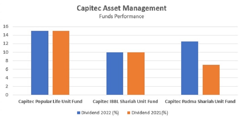 অর্থসূচকঃ সর্বশেষ ২০২১-২২ অর্থবছরে ঢাকা স্টক এক্সচেঞ্জে (ডিএসই) সূচক বেড়েছে সাড়ে তিন শতাংশের মতো। কিন্তু আপনার কোম্পানি ক্যাপিটেক অ্যাসেট ম্যানেজমেন্ট বাজারের চেয়ে কয়েকগুণ ভাল পারফর্ম করেছে। এ সময়ে ক্যাপিটেকের দুটি ফান্ডের একটি ইউনিট প্রতি ১৯.২০ শতাংশ এবং অপরটি ১৭.৩০ শতাংশ আয় করেছে। পারফরম্যান্সে  এই সাফল্য কীভাবে এসেছে?