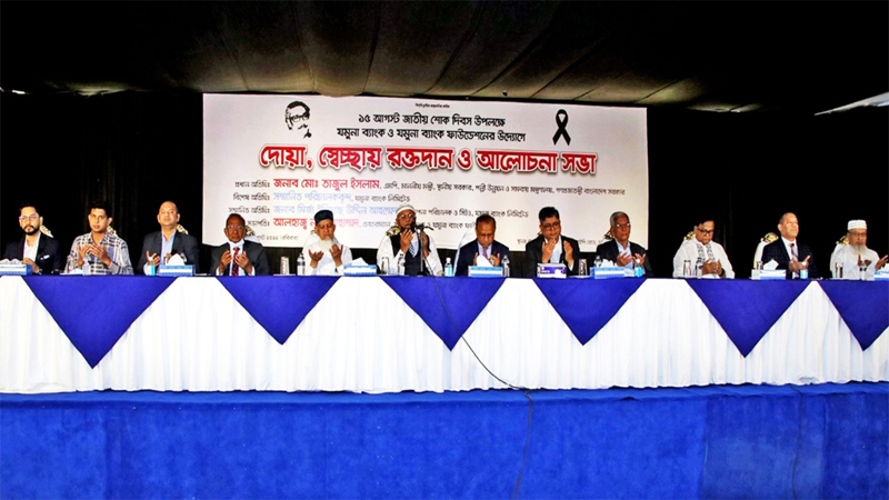 জাতির জনক বঙ্গবন্ধু শেখ মুজিবুর রহমানের ৪৭ তম শাহাদাৎ বার্ষিকী ও জাতীয় শোক দিবস উপলক্ষে যমুনা ব্যাংক ও যমুনা ব্যাংক ফাউন্ডেশনের উদ্যোগে আলোচনা সভা, দোয়া মাহফিল ও স্বেচ্ছায় রক্তদান কর্মসূচী অনুষ্ঠিত হয়।